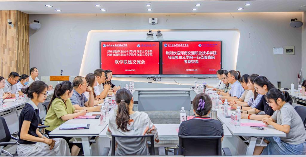 为深入学习贯彻习近平总书记对学校思政课建设的重要指示精神,进一步推动马克思主义学院(以下简称“马院”)建设和思政课改革创新走深走实,6月4日下午,我校马院一行20余人赴郑州铁路职业技术学院马院开展联学联建交流会。郑州铁路职业技术学院马院领导班子和教师代表参加会议。