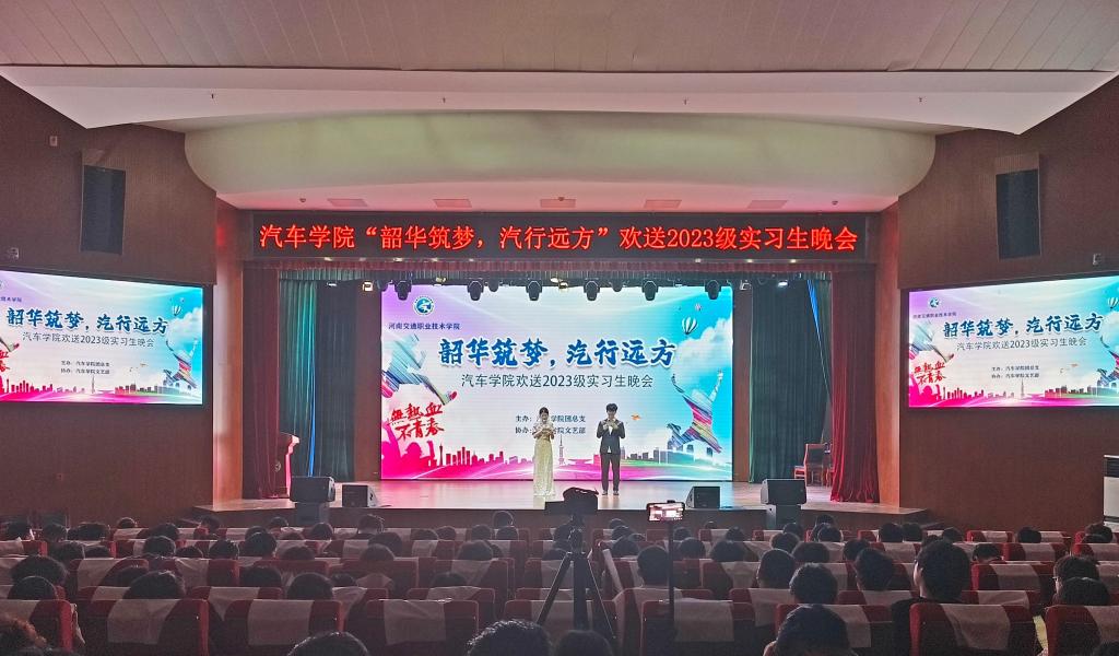 6月11日晚,汽车学院在航海路校区艺术中心礼堂为2023级实习生举办“韶华筑梦,汽行远方”欢送晚会。汽车学院党总支书记轩照振及相关负责人、全体毕业班辅导员与三百余名实习生代表到场观看。