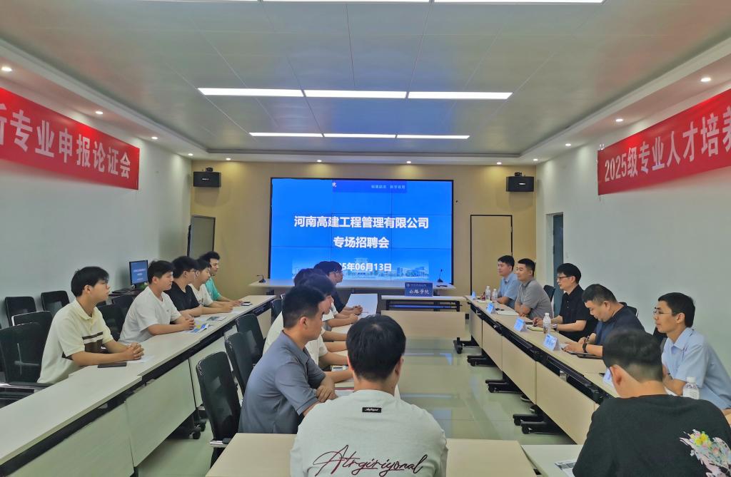 6月13日,河南高建工程管理有限公司副总经理王文超一行4人到公路学院交流并举行专场招聘会。