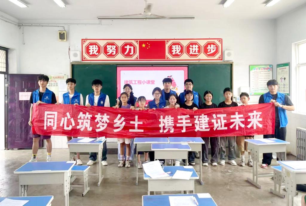 在裴村,志愿服务队深入建筑工地,实地参观学习BIM技术应用、绿色施工工艺等前沿技术,将智能建造、建筑工程技术等专业理论与实践相结合,深化专业认知;走进义马市第四小学开展建筑科普教育活动,通过案例讲解建筑结构、材料及安全防护知识,提升小学生的安全意识,有效激发了孩子们对建筑科学的浓厚兴趣。在山韭沟村,志愿服务队结合专业知识开展乡村环境调研,并参与农林耕作,以实际行动践行生态保护理念。