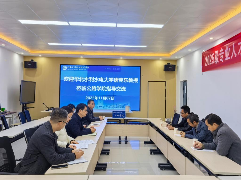 11月7日上午,教育部高等学校力学基础课程教学指导委员会委员、河南省教学名师、华北水利水电大学唐克东教授一行3人到公路学院考察交流。双方围绕产教融合、科教融汇、智能建造、智慧交通、“高本”衔接、实训基地共享、人才培养等展开探讨,共谋高质量发展路径。