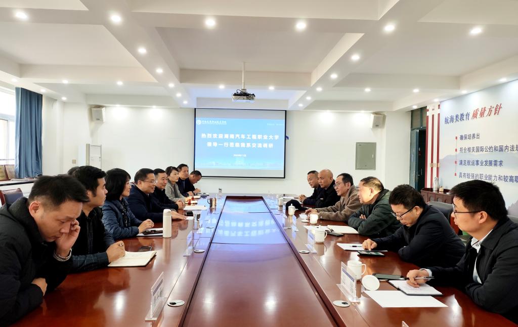11月21日下午,湖南汽车工程职业大学副校长周金宗一行到访学校航运海事系进行考察交流。交流座谈会在郑东校区举行,学校副校长李小强出席,航运海事系负责人及部分骨干教师参会。