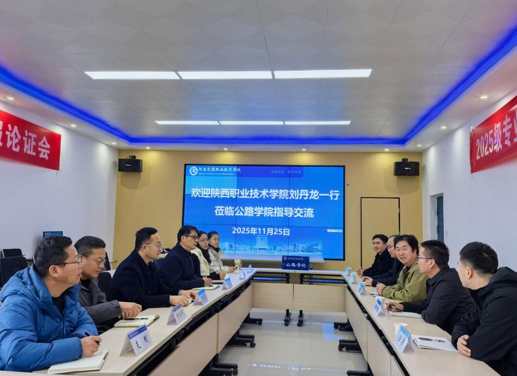 11月25日下午,陕西职业技术学院智能建造学院党总支书记刘丹龙、道桥教研室主任及骨干教师一行5人赴学校公路学院开展调研交流活动。公路学院院长王永、党总支书记刘甲玉携相关科室负责人热情接待了来访者一行,双方围绕产教融合、实训基地建设、实训教学改革、学生技能大赛、学生工作等进行探讨交流,共谋高质量发展路径。