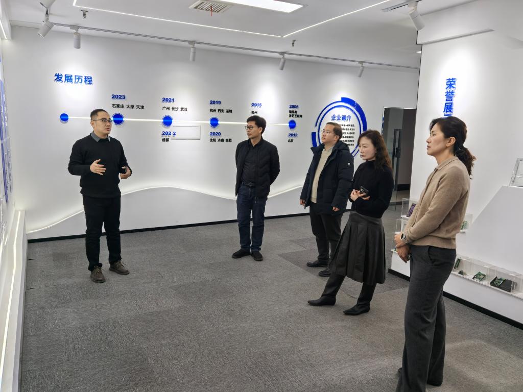在中犇科技有限公司,企业方重点介绍了其在人工智能通识课程建设、软件开发实践等方面的成功案例。校企双方围绕实习实训基地共建、课程资源开发与教学改革、人工智能教育创新以及科研协作等议题进行了深入座谈。,并就专业建设和产业发展需求进行合作方向的交流探讨。