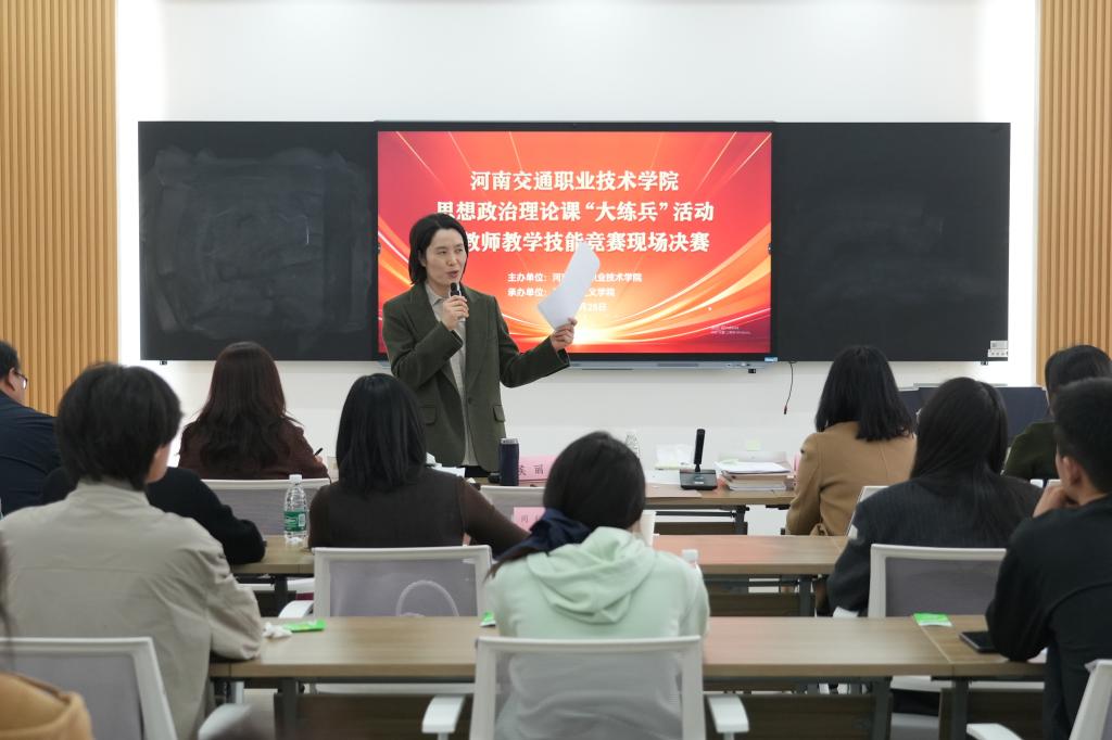 3月25日,由马克思主义学院主办的学校2026年思想政治理论课“大练兵”活动暨教师技能竞赛现场决赛在郑东校区顺利举行。学校专兼职思政课教师在同台竞技中展示教学风采,锻造专业能力,进一步推动学校思想政治理论课改革创新,全面提升思政课教学质量。